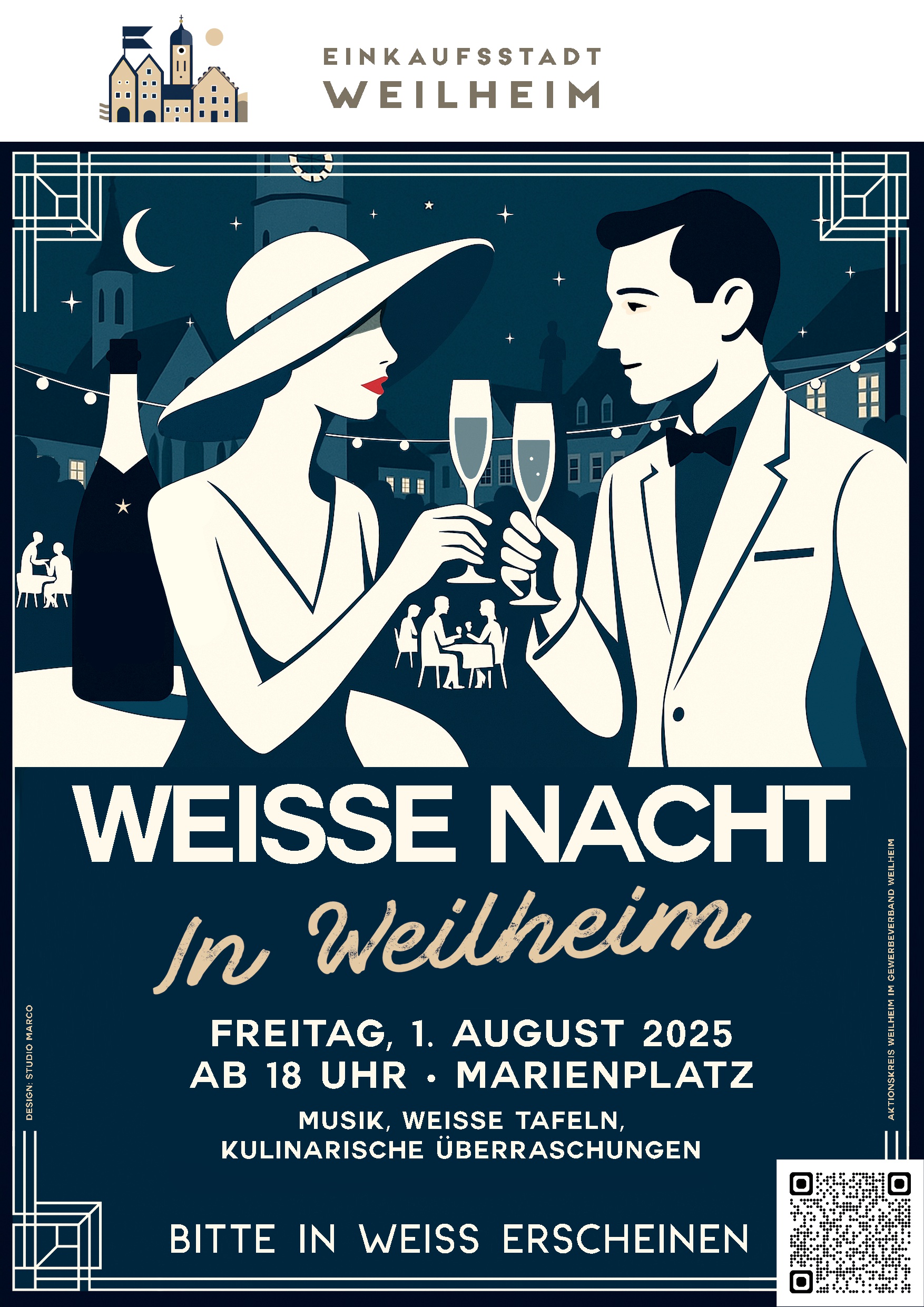 Ob beim gemütlichen Bummeln und Flanieren, beim Drink an der Bar, beim Lauschen der Musik oder beim Abendessen unter freiem Himmel – Weilheims Innenstadtakteure laden herzlich dazu ein, diesen Sommerabend in der Stadt zu genießen.