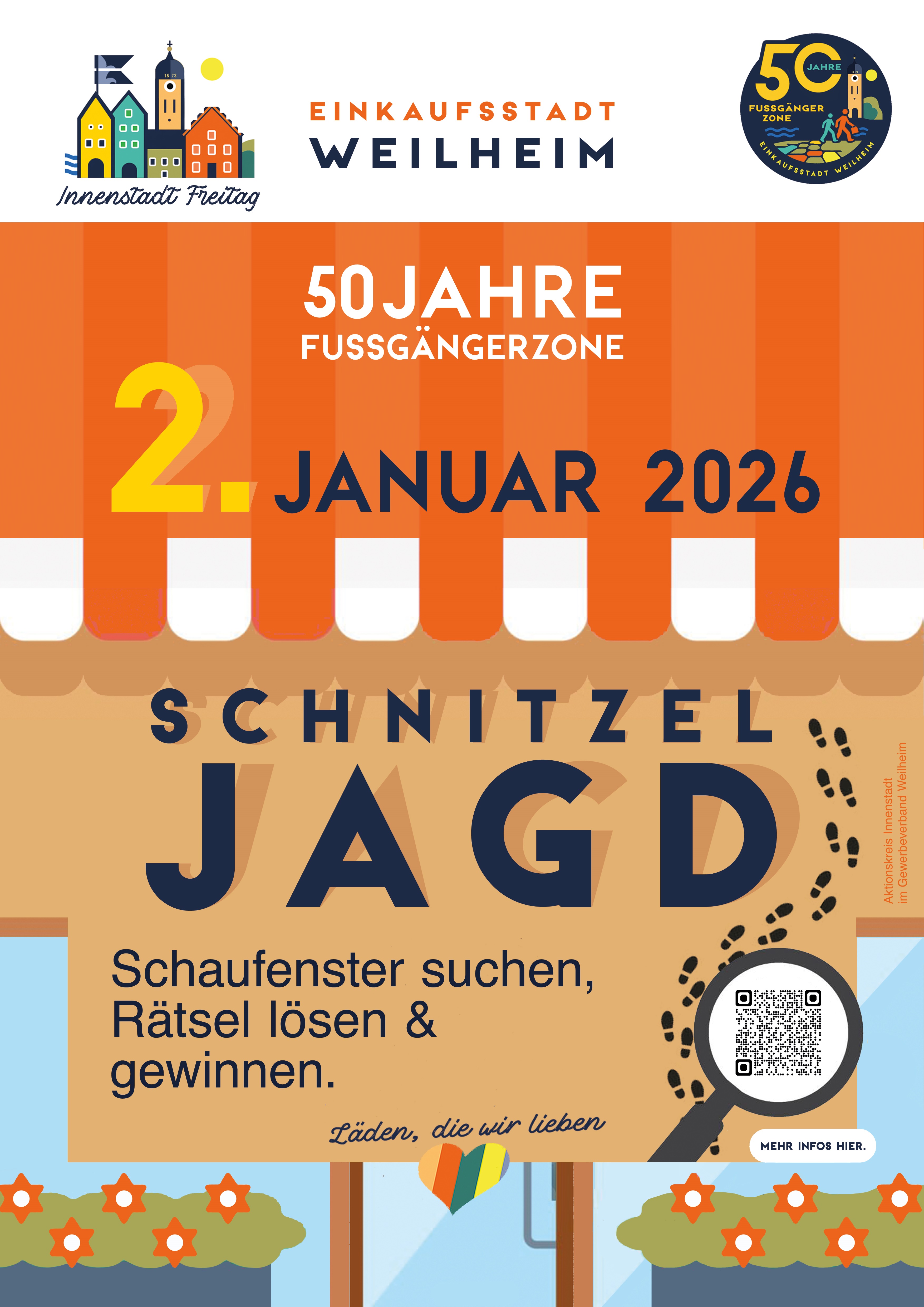 Herzlich Willkommen zum Innenstadtfreitag in Weilheim in Oberbayern! So heißt es seit 2024 jeden ersten Freitag im Monat. An diesem Tag zeigt sich der Einzelhandel in der Weilheimer Innenstadt von seiner noch vielfältigeren Seite - verlängerte Öffnungszeiten, verbunden mit einem besonderen Event. Ob aus Starnberg oder Tutzing, ob aus Seeshaupt, Penzberg oder Peißenberg - kommen Sie zum Shoppen in die Kreisstadt des Oberlandes! Genießen Sie bis mindestens 19 Uhr die persönliche Beratung und den entspannten Einkauf in freundlicher Atmosphäre, und seien Sie gespannt auf das abwechslungsreiche Event-Programm, das wir für Sie als Schmankerl bereithalten!